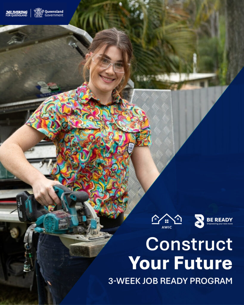 Do you know or are you a woman looking to enter or re-enter the workforce with confidence and a strong skill set? Look no further! We are excited to introduce the ‘Construct Your Future’ program – a 3-week job ready initiative. Program overviews and outcomes include: Practical workshops, industry guest speakers and work experience opportunities |