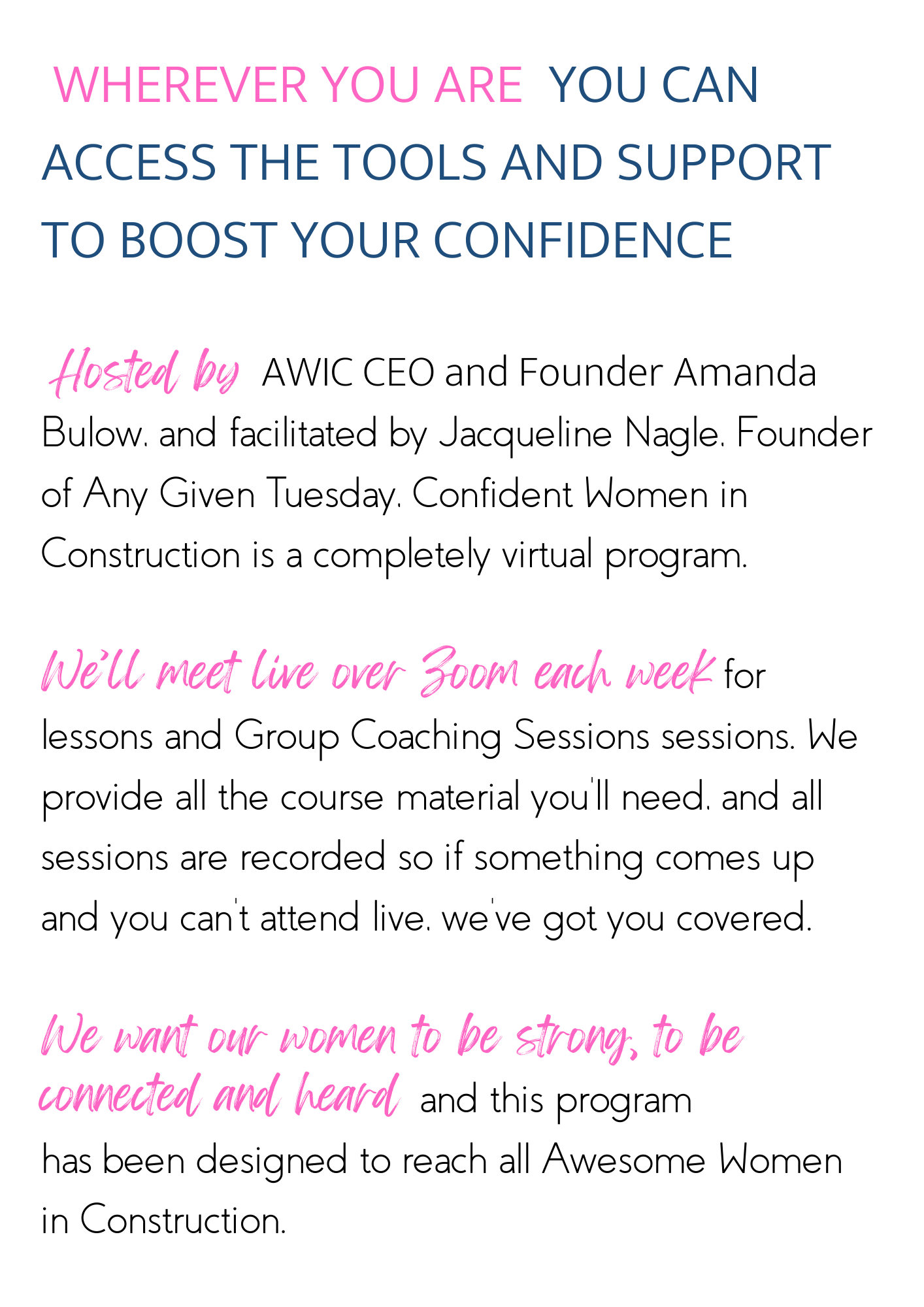 As Strategic Advisor to AWIC, a certified Master Practitioner in Neuro Linguistic Programming, and an Advanced Hypnotherapist, Jacqueline brings her unique lens on navigating relentless change,